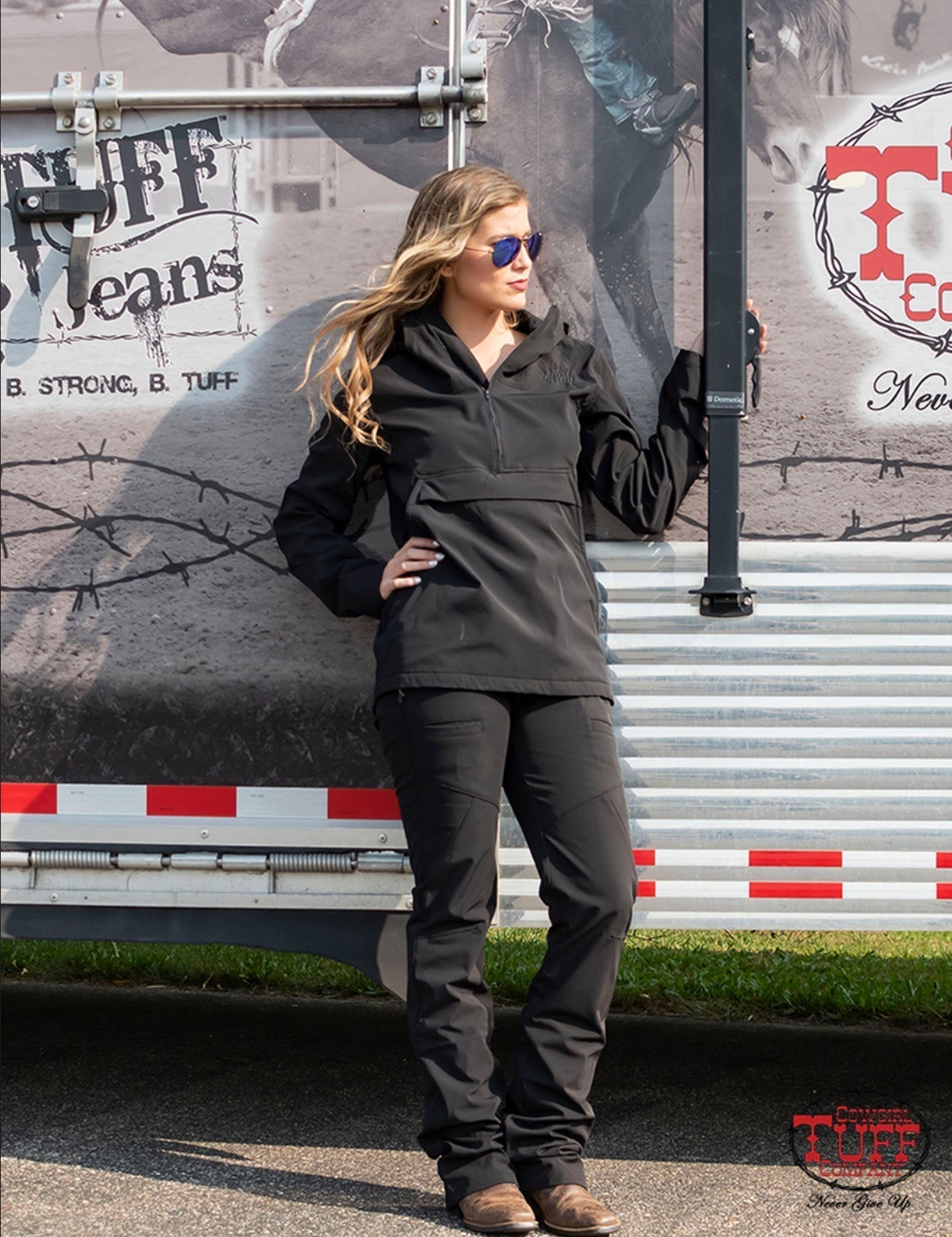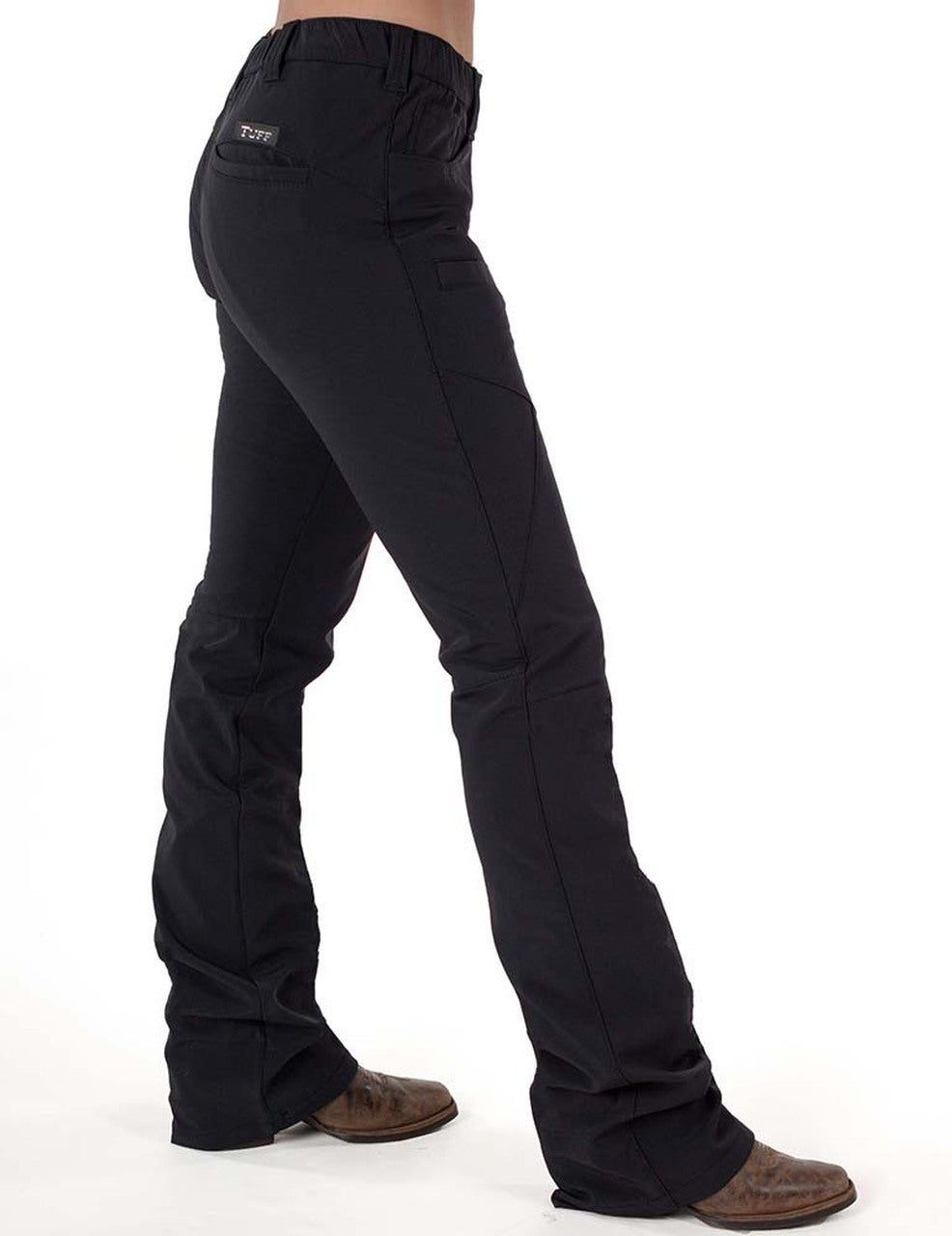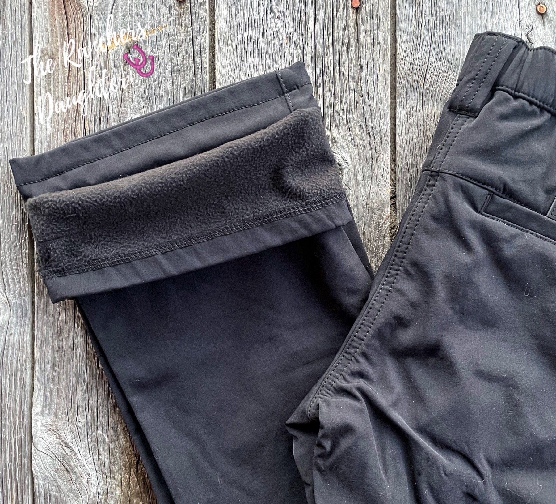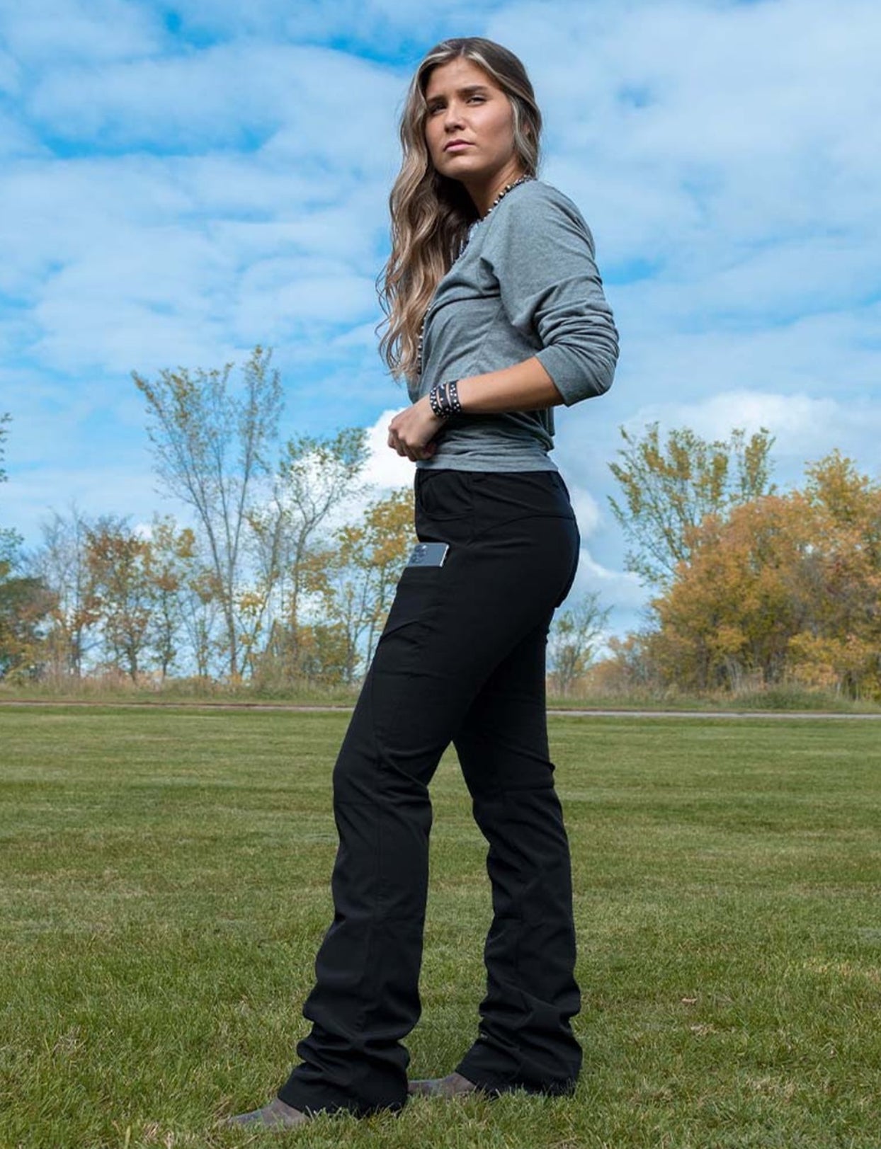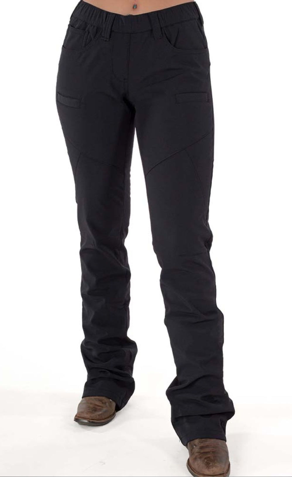 Cowgirl Tuff Work Hard Play Hard pants are now an easy pull-on style with wide elastic waist with open front and back pockets and seven standard belt loops. They are still a very sleek style that is pure comfort and very flattering with two sleek front cellphone pockets. They entail ultra-amazing, thin, microfiber lined stretch that everyone loves. They are wind, water, and cold resistant. These pants have proven themselves as a must have staple in everyone’s closet!!! Get yours today and see why so many have two or three pairs!!!