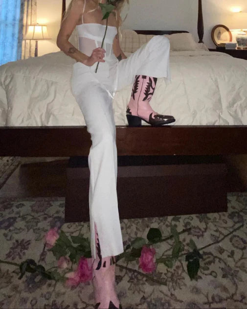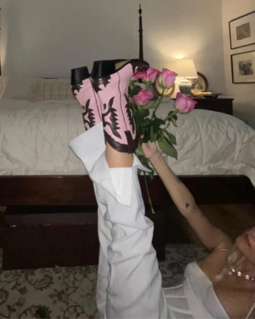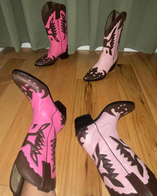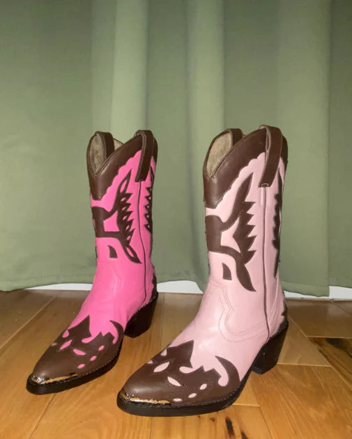 Mid cowboy style with eagle style applique in either 'hot pink' & dark brown OR 'mauve' and dark drown