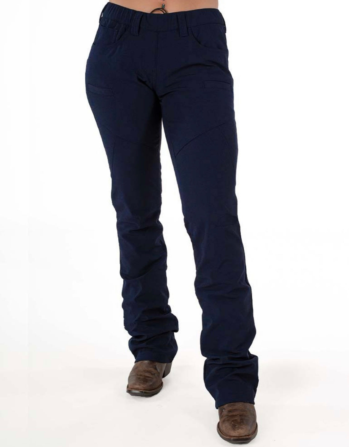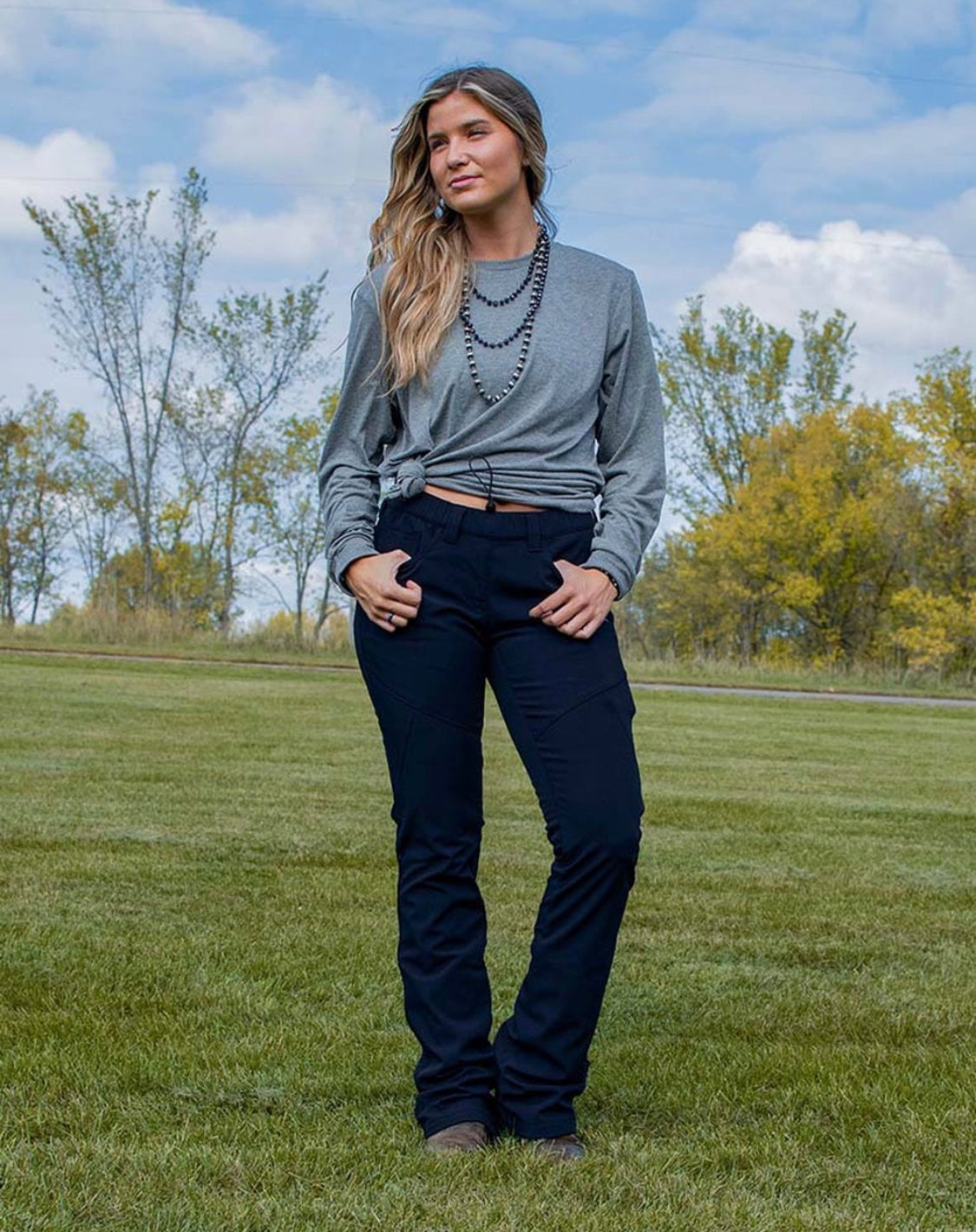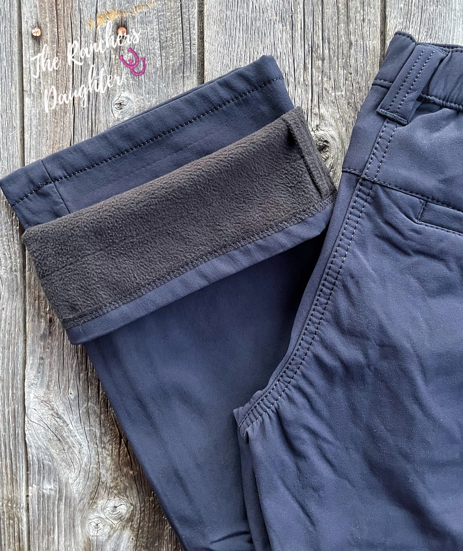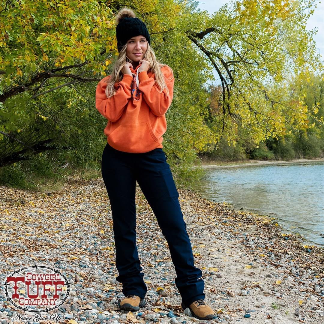 Cowgirl Tuff Work Hard Play Hard pants are now an easy pull-on style with wide elastic waist and an adjustable drawstring for that perfect fit along with open front and back pockets and seven standard belt loops. They are still a very sleek style that is pure comfort and very flattering with two sleek front cellphone pockets. They entail ultra-amazing, thin, microfiber lined stretch that everyone loves. They are wind, water, and cold resistant. These pants have proven themselves as a must have staple in everyone’s closet!!!Get yours today and see why so many have two or three pairs!!!