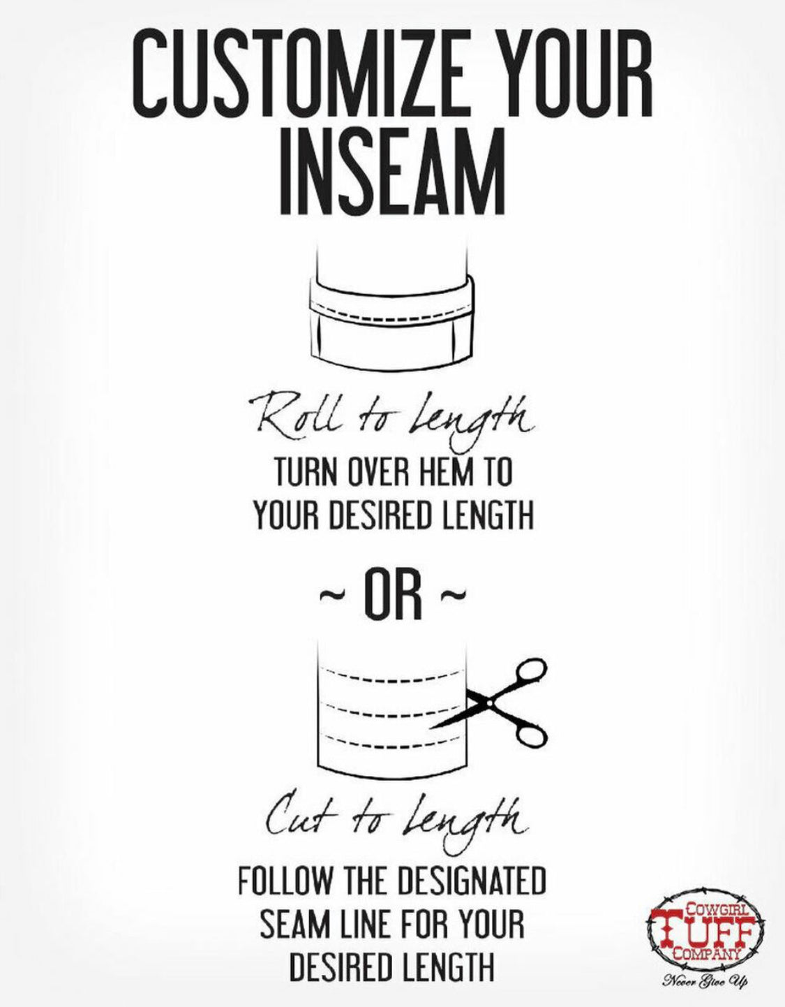 Cut to length inseam. They come in a 37’ length with pre-cut stitching lines that you cut with a sharp scissors at the 35, 33 or 31 lengths. Yes, they will wash up great because microfiber does not fray. So, Work Hard in them or Play Hard in them, they will be your new favorites!!!
