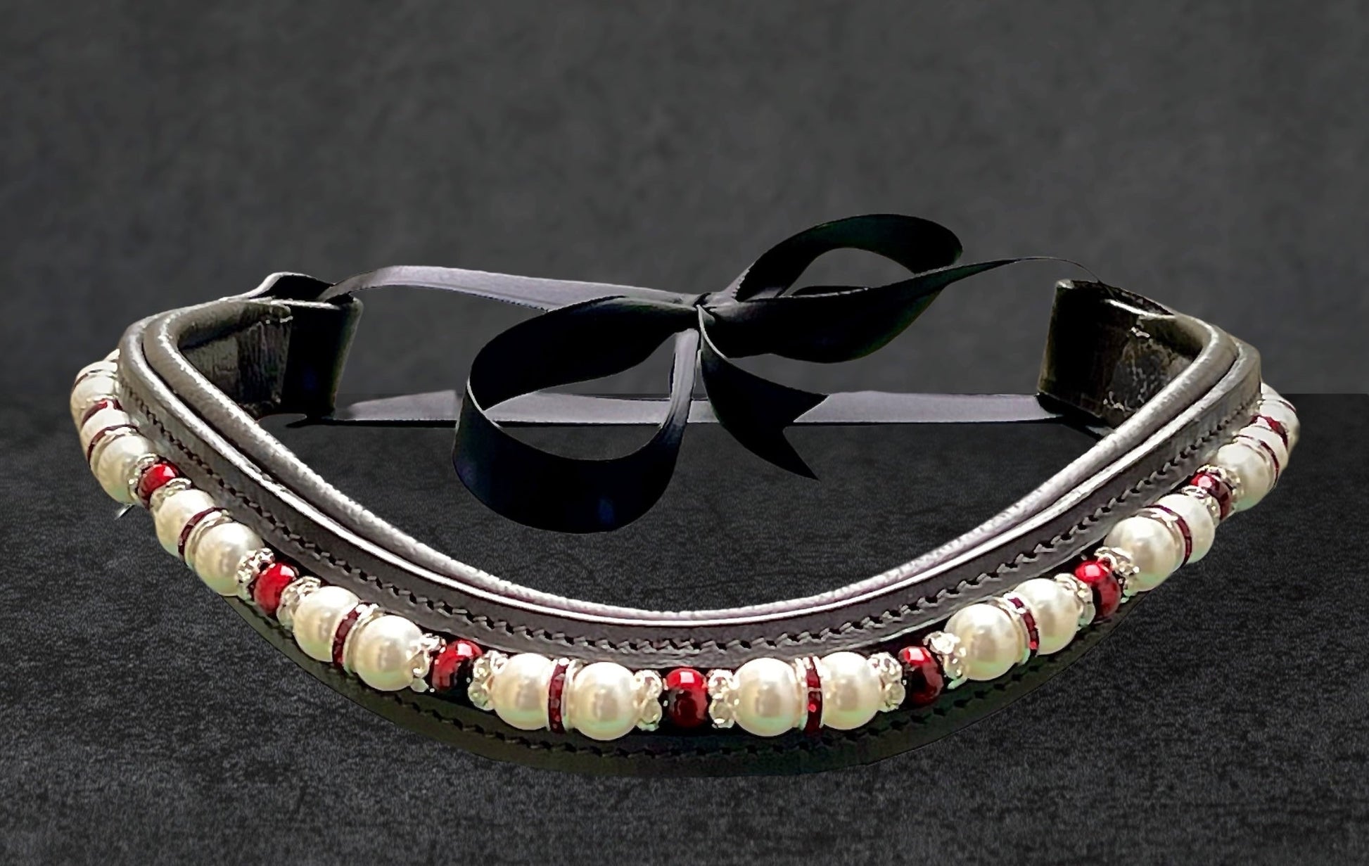 Each browband is made of genuine leather & padded for your horse's comfort. I hand sew high quality beads/stones in place creating a custom, handcrafted item that will make you stand out on the trail or show ring.