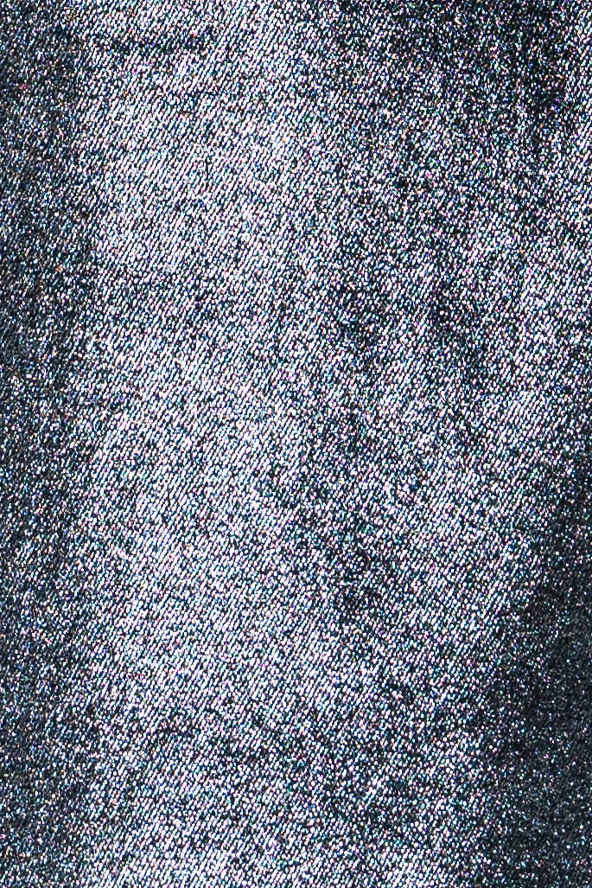 A pair of metallic mid-rise bootcut jeans featuring a 5-Pocket construction and a zip-fly closure.