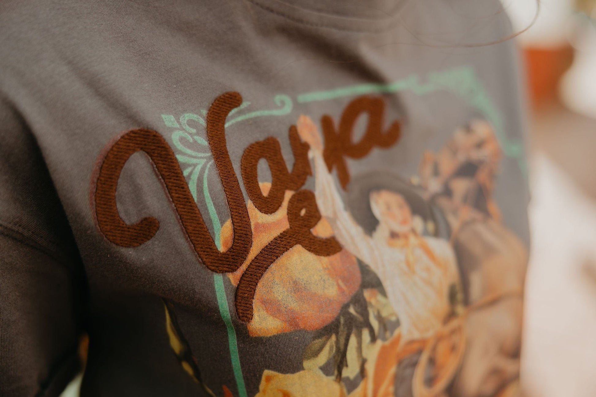 Easy, breezy, and full of spirit—the Vaya Con Dios Dress is your new go-to tee dress. Featuring a bold graphic of a cowgirl in motion, it’s got all the heart of the West in one effortless piece. Just throw on and ride out.